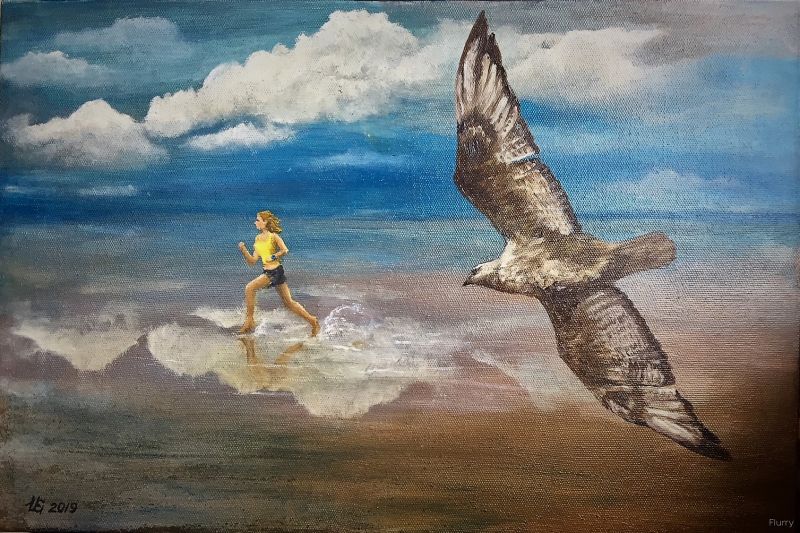 Марафон на соляном озере Эльтон. холст, масло 40х60, в подарок участнице марафона |