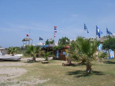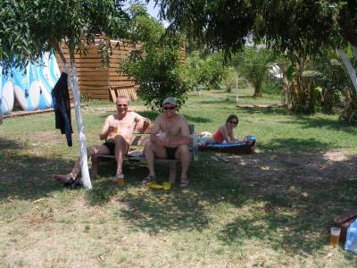 Конечно, Эгейское море наиболее ветренное зимой, а летом это все-таки не Египет. Все можно понять, посмотрев на соотношение размеров и количеств парусов на серфстанции. Т.е. все-таки большей частью использовались паруса 6-7-8 метров и доски соответствующие. Маленькие досочки были еще в упаковке...может быть конечно это из-за начала сезона, но немного смущало.