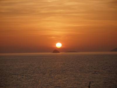 Акватория большая и пустая, корабли ходят только на горизонте - ближе к Косу.
