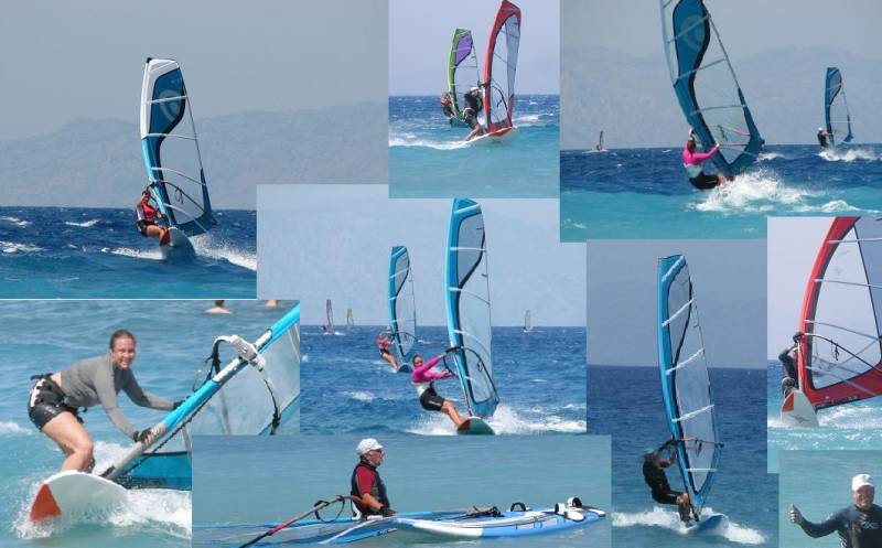 На севере вдоль дороги-пляжа от Blue Horizon до столицы острова города Родоса (где-то 7-10км) много мальеньких прокатов с самыми разными досками и парусами, в том числе и хорошее оборудование, но катание, судя по всему там немного другое.