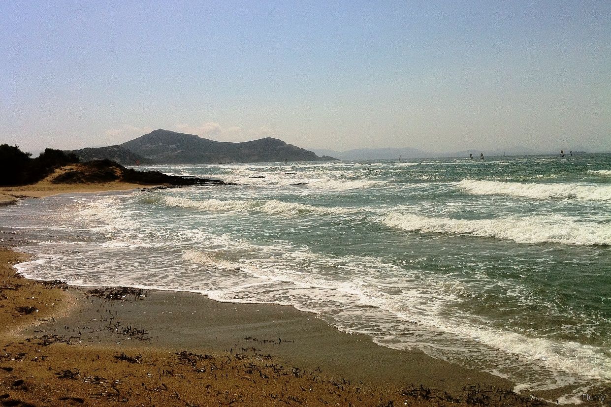 Так как ветер не утомлял, увы, поездили по острову. Он маленький, все близко. В самом центре, далеко от берегов, нашли большущий серфовый магазин с досками, парусами и шмотками. Цены приемлемые, но не стоковые. http://www.bitofsalt.gr/