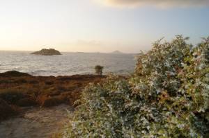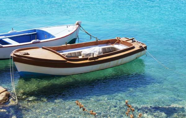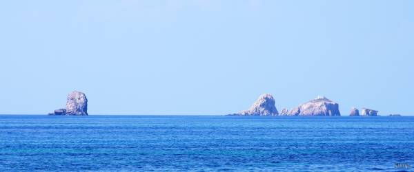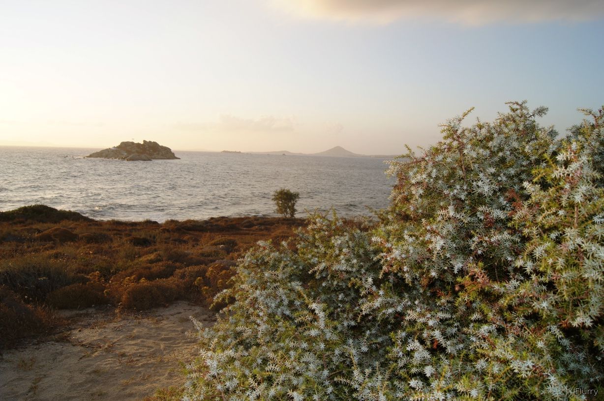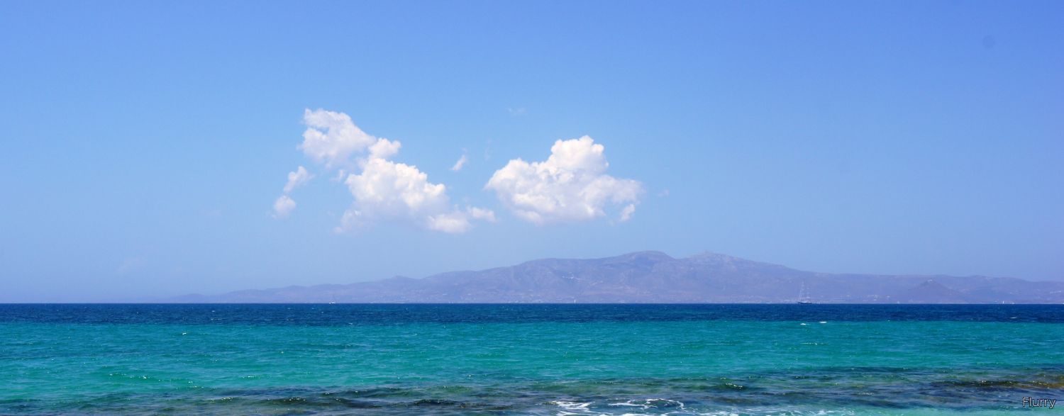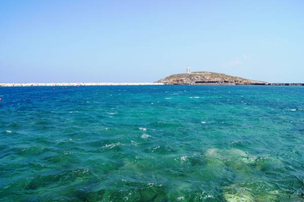Примерно в километре от берега два диких острова – поменьше «скала» и большой длинный. Ну а дальше – километрах в пяти-шести тает в дымке побережье Наксоса.