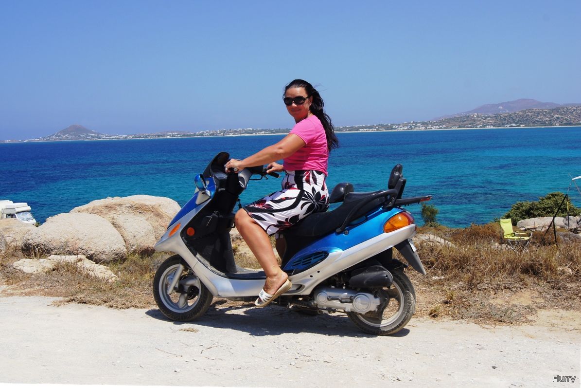 Наша «кавалькады» из пяти разноцветных тарахтящих скутеров весело носилась по проселочным дорожкам острова, вдоль моря на закате и через холмы…И ужины в приморских тавернах были, как всегда, выше всяких похвал.
