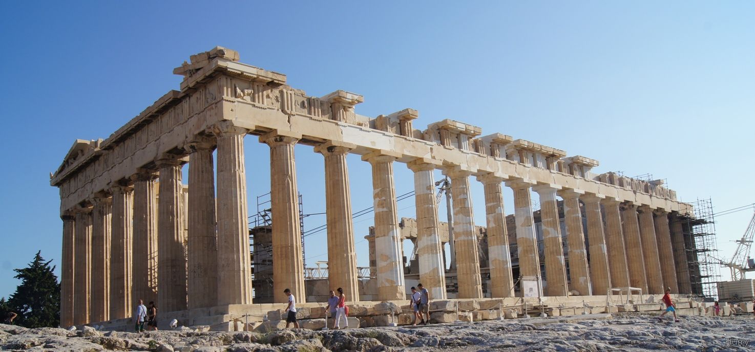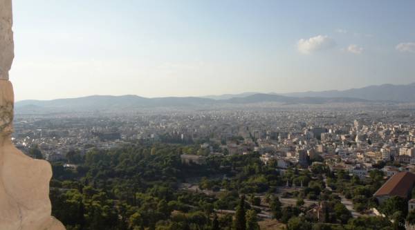 Самолет с Санторини опоздал, и на пересадку мы не успели. Конечно во всем моя вина, надо было бронировать сложный маршрут, а не покупать билеты отдельно, но и на старуху бывает проруха. Думала, правда, что на худой конец есть ночной рейс из Афин в Москву, полетим на нем… но уппс… Как раз тогда вывозили пострадавших от турагентов туристов, и рейс вечерний был забит, только на следующее утро. Так что «мои туристы» тоже пострадали и заночевали в Афинах. Номера в отеле около Акрополя заказали по интернету из аэропорта, и отправились на метро в город. Отель был нормальный, в центре, хотя по улочкам рядом с Синтагмой. пришлось побродить с чемоданами. Нашли, отправились есть и гулять. Добрались и до Акрополя, правда уже было около семи вечера, и, думаю, Олег не особо хотел лезть в гору, но не повезло, все работало, купли билеты по 12 евро и под вечерним, но еще жарким солнцем полезли к Парфенону…