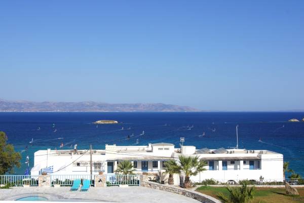 От этой же станции держат отель. Отель http://www.parosphiloxenia.com/ (хилая Ксения)Это вообще полный семейный бизнес. Предлагают и пакеты со скидкой: проживание и виндсерф, (но мы опаздали, поэтому жили в другом, рекоменованом Папой Никосом отеле) Устроились в http://www.captainsrocks.gr/english/ Captain Rocks. Чуть подальше, точнее повыше, метров 100 в крутую горку, но тихий, чистый, уютный, с бассеином и скромным европейским завтраком. Wi-Fi только на reception. Основное достоинство – великолепный вид сверху на весь спот.