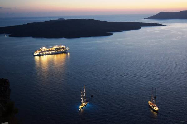 Честно скажу, что второй раз вход в кальдеру уже не произвел на меня такого фантастическо впечатления, как в первый. Я просто уже ждала КАК это будет. Но подготовила места для просмотра на правильном борту, и заставила всех сесть туда заранее…и ждать…