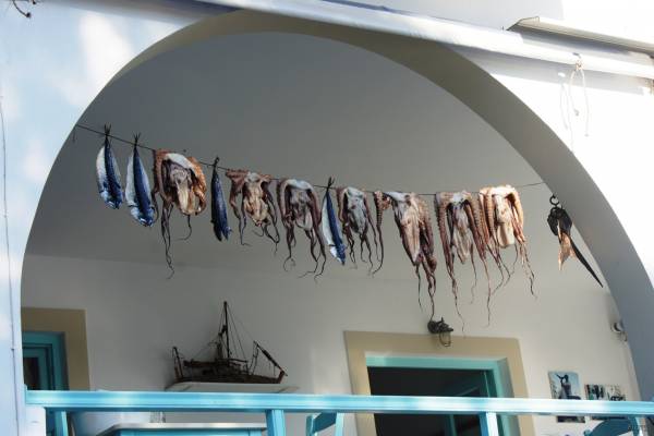 Конечно, гораздо лучше, вкуснее, разнообразнее в рыбацких поселках. Лучший ресторан однозначно был в Aliki. Еле уползали оттуда за смешные по меркам островной Греции деньги. 70 евро на пятерых с вином, и кучей вкуснейшей еды, свежей рыбы, кальмаров, осьминогов. Самая дешевая и тоже вкуснейшая на острове – баранина…