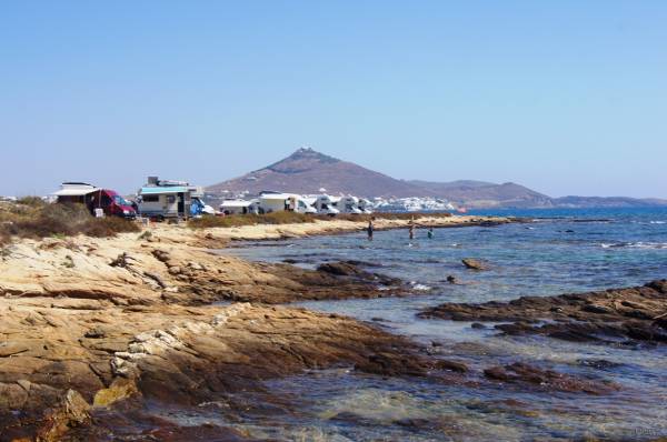Съездили на кайтовую сторону. Но поехали в полное безветрие и даже кайтеров не застали. Они катаются где-то в районе пролива с Антипаросом. Местечко называется Пунта Но так как оно очень похоже на Pounda – то сначала заехали туда.. Кайтеров там не было, но большой окультуренный пляж в красивой лагуне с прокатом всяческих водных развлечений, вейки, каяки и тп, и полным фаршем развлечений – бары, дискотеки…