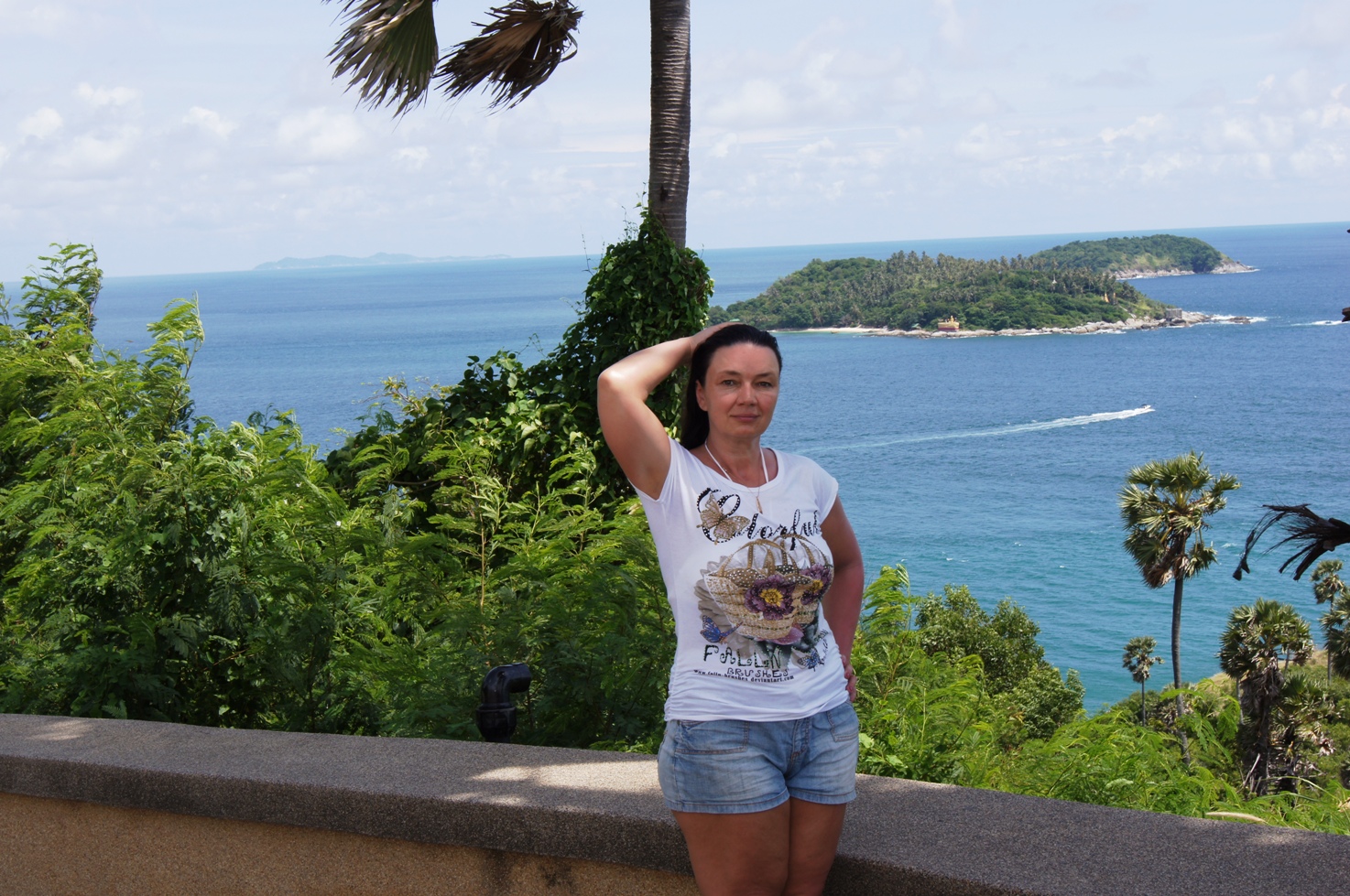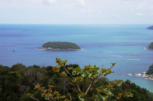 Выбрались и в «длинную» поездку по острову на скутере в поисках серф-станции или кайтеров. Ветра, кстати, были. Да и тучки набегали быстро с дождями и грозами. Правда, так же быстро все и заканчивалось. Но вот где кататься на серфе (машины с досками для серфинга на крыше встречались иногда) или на виндсерфе не понятно. По нашему расчету оптимальное место должно было быть на южной оконечности острова. Туда и отправились. Дорога оказалась еще веселее, чем от Патонга до нашего «Таворна на горе» (как называли его тайцы). Горки повыше и покруче и 180 градусные повороты. Только около огромного пляжа Катон по набережной удалось разогнаться. В других местах 60 км в час было пределом для меня. Посмотрели другие места-пляжи. Заехали на платный маленький и очень красивый пляж Paradize. Туда добраться с подъемом и спуском по очень крутой и узкой дорожке, кажется можно только на мопеде. Но тук-тук нам встретился тоже. Съездили на вью-поинт. Высоко, красиво, во все стороны видно побережье и острова. Мне очень понравилась «птичка» с которой фотографировались.