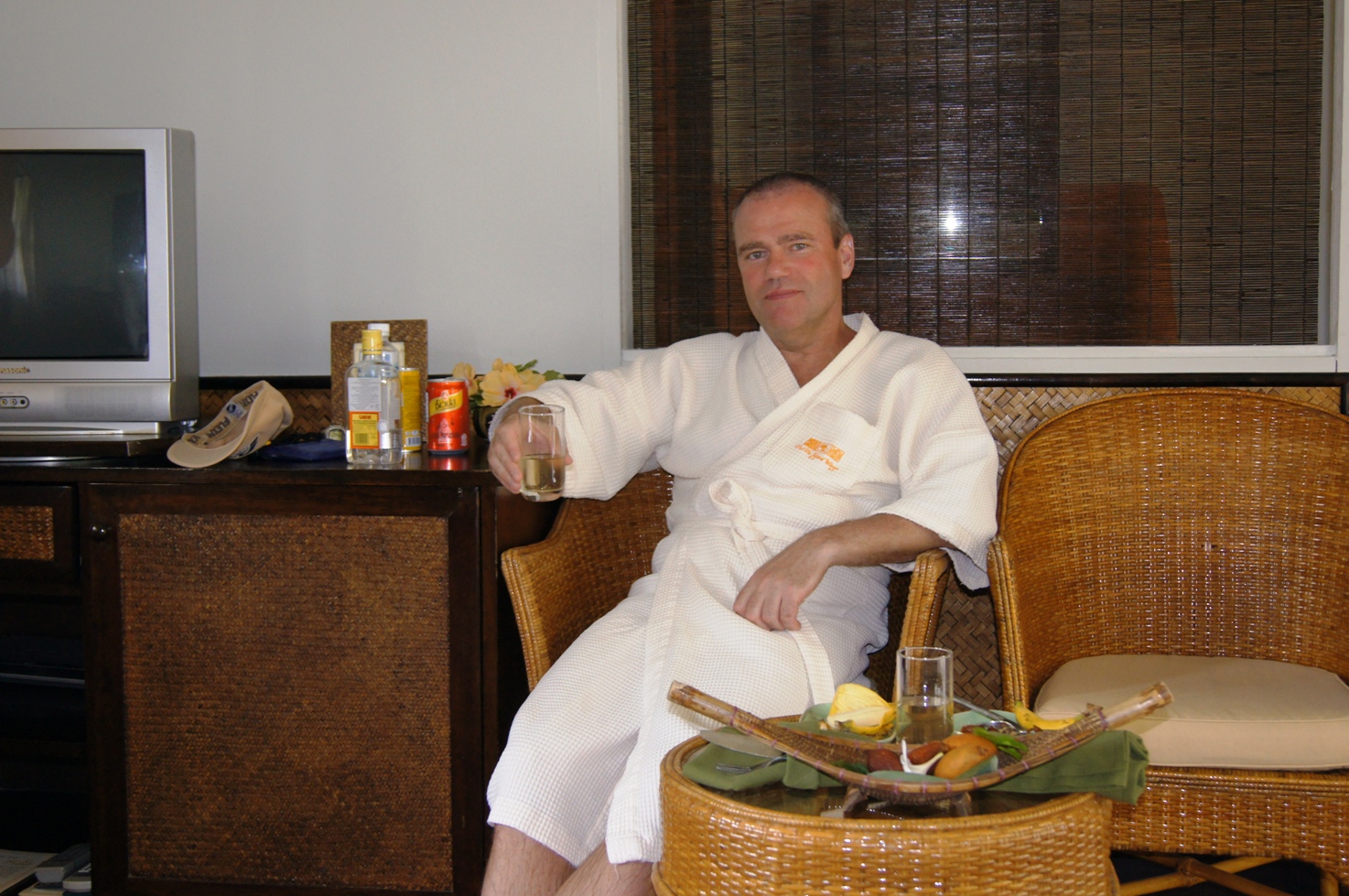 Отель, состоящий из отдельных домиков-бунгало скрывающихся в роще кокосовых пальм. Море фантастического бирюзового цвета, с прозрачной и прохладной водой. Мы плавали и ныряли, восхищаясь пейзажами, пустотой и тишиной экзотического места… и даже обедать не пошли! Правда в номер нам положили корзину фруктов, а джин мы с собой привзели…