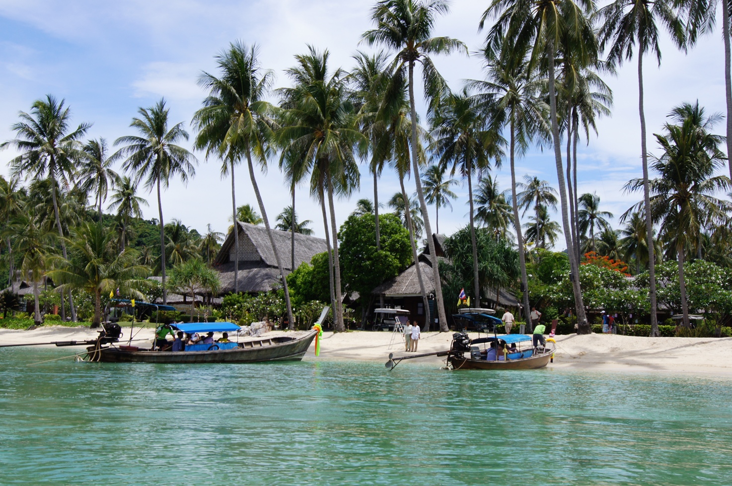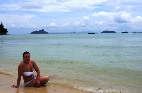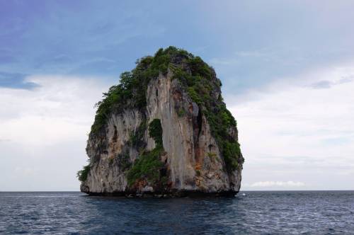 Во-первых после долгого перелета нам дали пару дней отдохнуть, расслабиться, поплавать и позагорать… А на третий день рано утром нас на автобусике через горы повезли на другой конец острова, дальше на паром и два часа по морю мимо странных островов, с небольшой «вью поинт» стоянкой около красивого побережья… Прибыли на остров Пхи-Пхи, пересели на катер и уже через полчаса нас встречали с цветочными гирляндами на красивейшем белоснежном пляже.