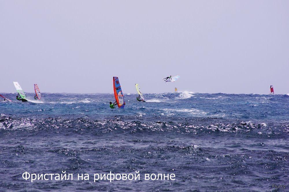 Первый день нашего выхода на воду порадовал, кроме сильного ветре, тем, что был последний день соревнований по фристайлу. И посмотреть можно с удовольствием и с завтрашнего дня не будут нам перекрывать дорогу на риф, куда настоятельно просили не ходить - не мешать.