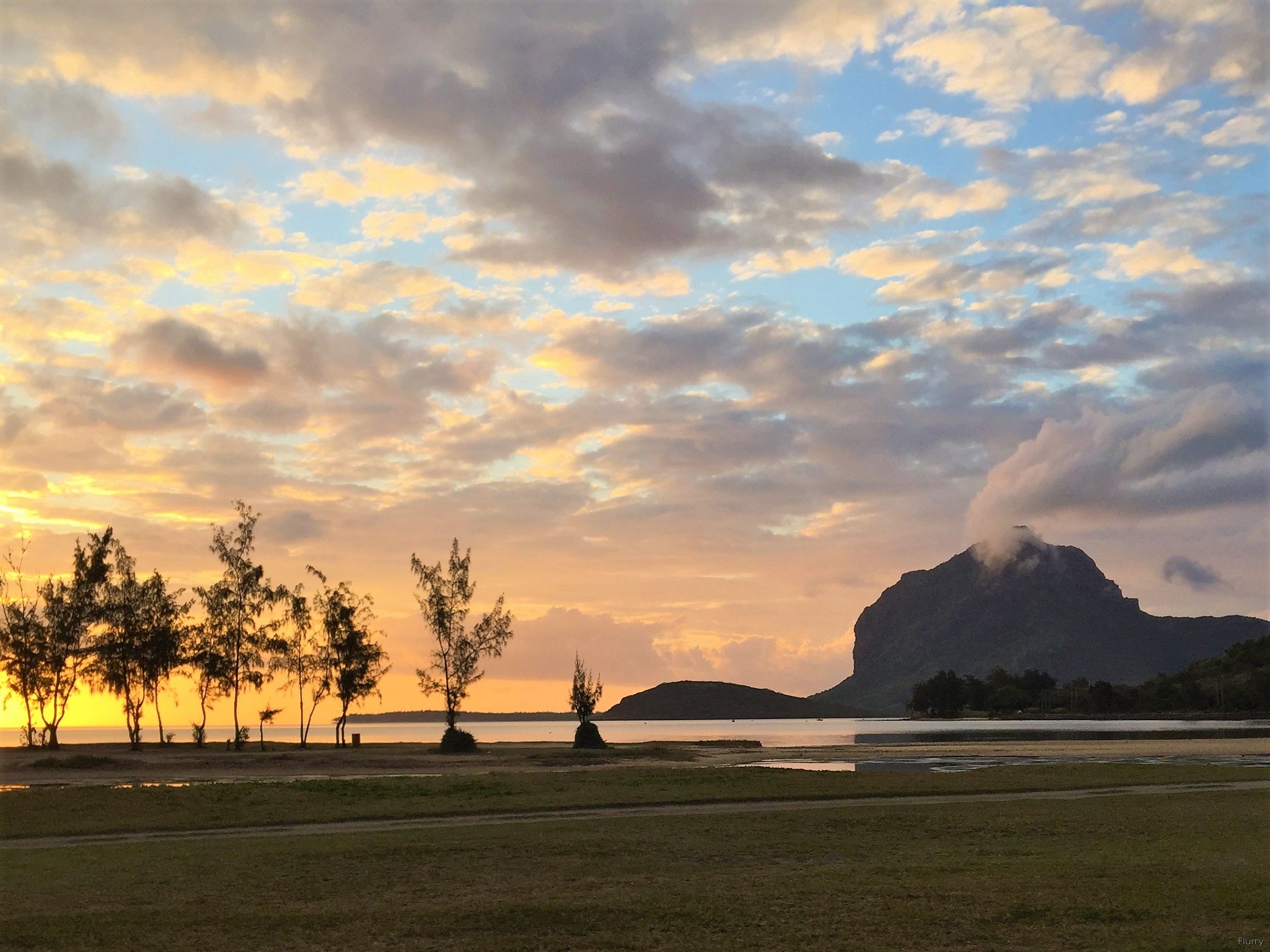 Чтобы не дрыхнуть до ужина после каталки, потащила Олега смотреть на закат. Стандартное развлечение многих живущих в отеле и почти всех, кто приезжает купаться или кататься на дикий берег Ле Морна.