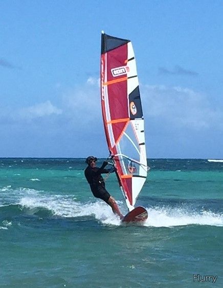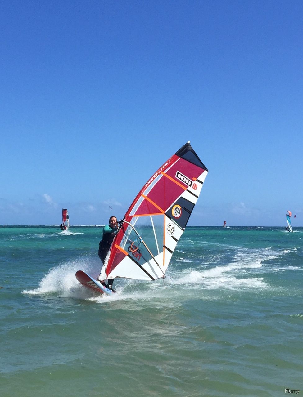 Станция вывесила красный флаг. Но все, в том числе и я, пошли в океан. Там и ветер был ровнее и приятнее. Волн не было, но жуткий чоп в канале немного выматывал, дальше почти ровная аода и небольшие волны с расстоянием 15 метров. Снимала видео – с камерой на гике, с камерой на топе…. Посмотрев, выяснила – как близко там риф к поверхности. А когда камеру сняла с паруса и поехала в очередное путешествие – увидела черепаху! Прям рядом с доской она нырнула помахивая коричневыми лапками. А камеры то нет…. В последующие дни еще видела черепаху побольше, та даже уплывать не стала, только посмотрела на меня… а вот китов-дельфинов не удалось застать. День, хотя и без волн был отличный, катала до вечера. Матрикс сказал – завтра будет так же хорошо…эх