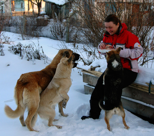 Нет уже Линды, увы, по нашей вине. Застрелили на лодочной станции Джека. Попала под машину дочка Джека белоснежная Бондюэль, которая так здорово играла с кайтом на зимнем море – то нападала на него, то, когда он опускался вниз, быстро ложилась и маскировалась в снегу. Где то исчезла черная похожая на упрощенного лабрадора Грета , отличная пловчиха, когда то кормившая своих восьмерых щенков вылавливая рыбу в море.