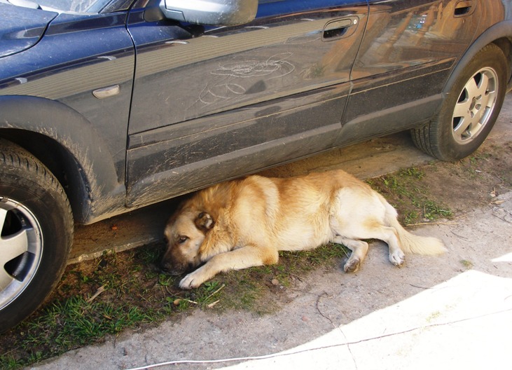 Теперь нас посещают кошки. Когда-то (в год Тигра) на новый год к нам пришел рыжий полосатый котенок. Боязливый сначала, ласковый потом. Зимой они вместе с Линдой и щенками жили в собачьей будке на угловом участке, летом разбегались..