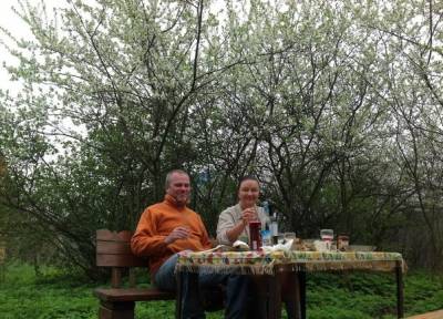 До сих пор стоит перед глазами, как однажды, в мае, мы приехали поздно ночью. Цвели вишни и яблони, громко пели соловьи – и в огромном высоком небе светили такие яркие звезды! Я налила бокал вина, села на бревна, которые лежали у дома, и сказала «Я отсюда никуда не уйду»
