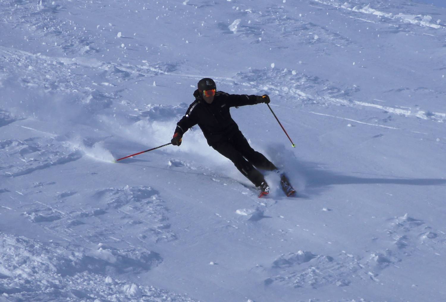 Вова – прекрасный собеседник и хорош на склоне. Только он мог выписать такую ровную и красивую чегетскую змейку по свежему снегу.