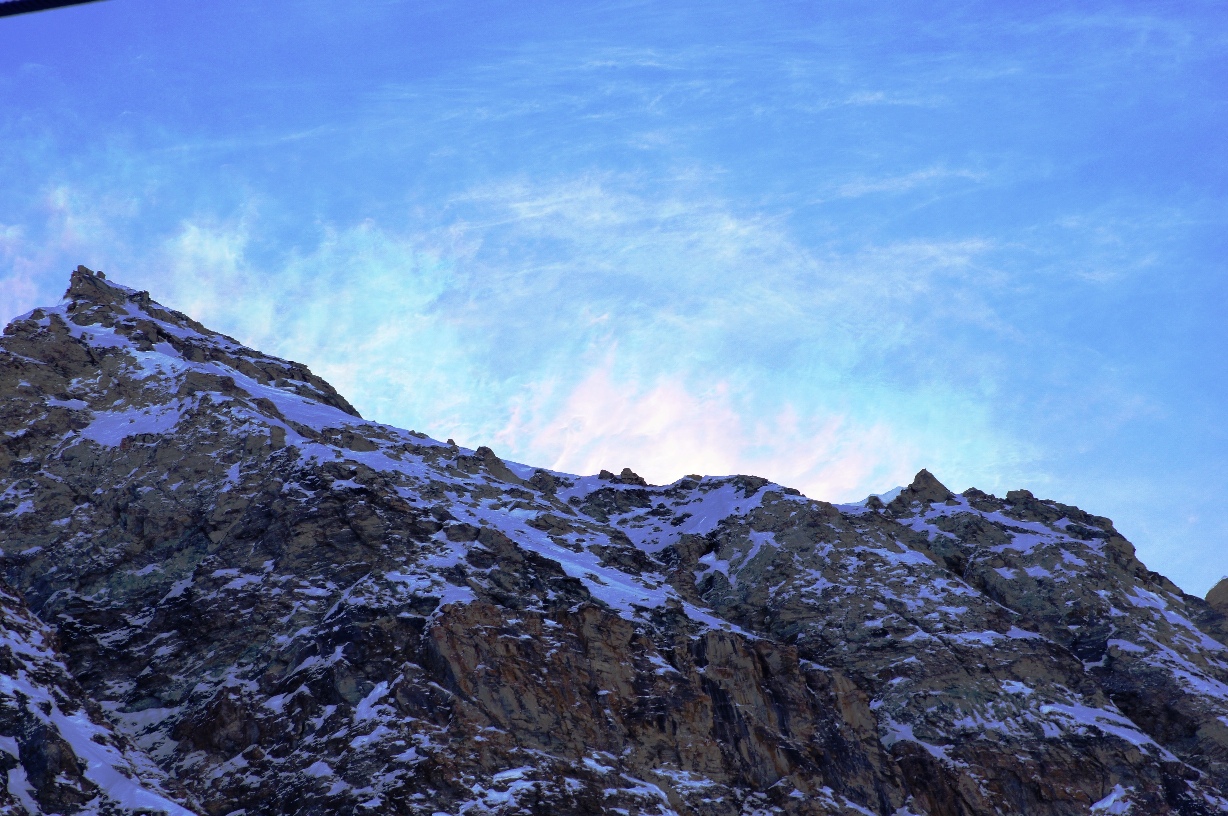 Вот яркое солнце и даже фильтры очков не могут убрать слепящую и сияющую белизну окружающих склонов и дальних вершин.
