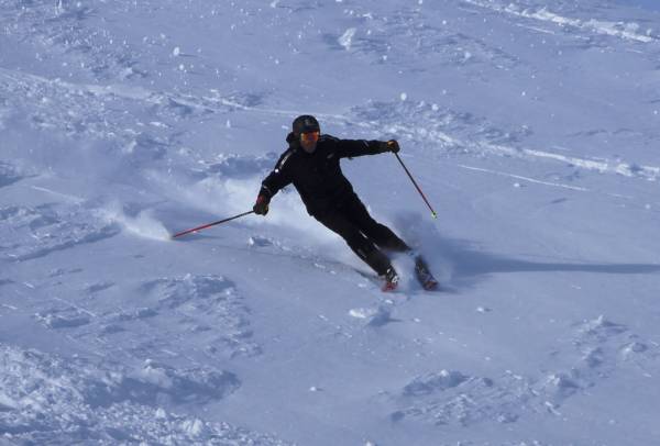 Правда, и накувыркалась я, потеряв осторожность от восторга. Самое смешное было, когда при очередном кувырке на Майн-готе, я потеряла лыжу, и она, не зацепившись за пухляке скистопами весело погнала вниз по крутому склону на трассу. Я же осталась в трехста метрах выше. Спуститься «методом тетки» по глубокому снегу было не очень реально, поэтому долго стояла на склоне, в ожидании, пока Олег догонит мою лыжу и привезет мне ее…