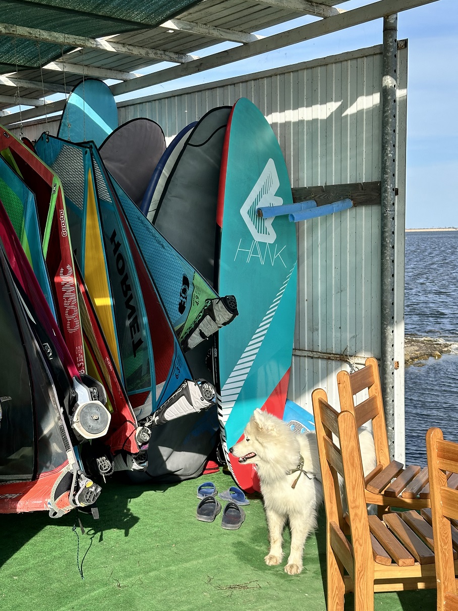 И, конечно, очень удобно именно отсюда "путешествовать". Недалеко несколько волновых спотов (Надобы, Кучугуры), до Веселовки и Благовещенки час езды. Рядом (относительно) и Крым. Остров видно из окна, Порт Кавказ рядом,но паромы пока доступны только пешеходам. Даже до гор гораздо ближе, чем из дома, за световой день доберешься.
