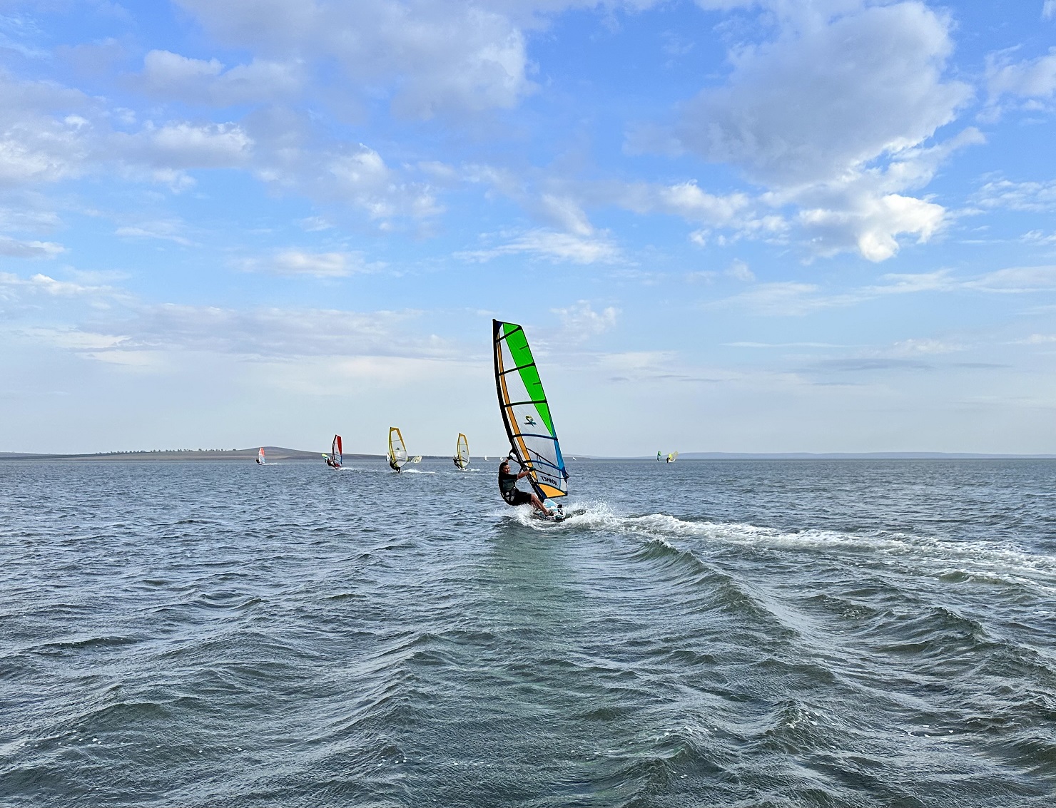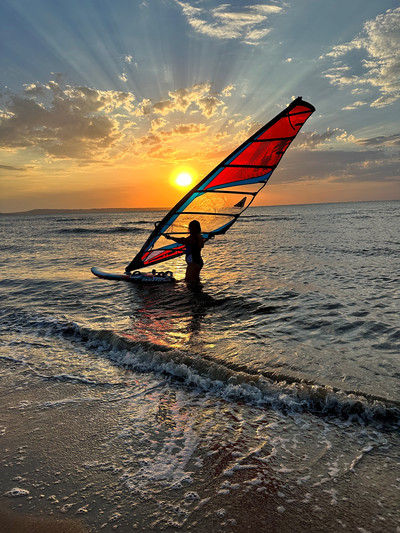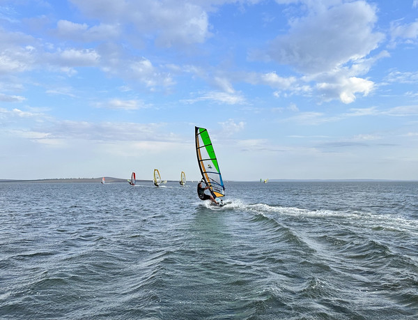 Можно выйти от дома с доской и парусом и покататься в море. А если ветер восточный, и на море - рваный и отжимной, то отправиться в Динской залив.