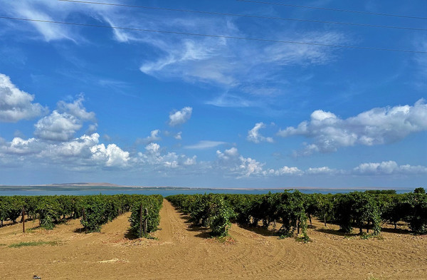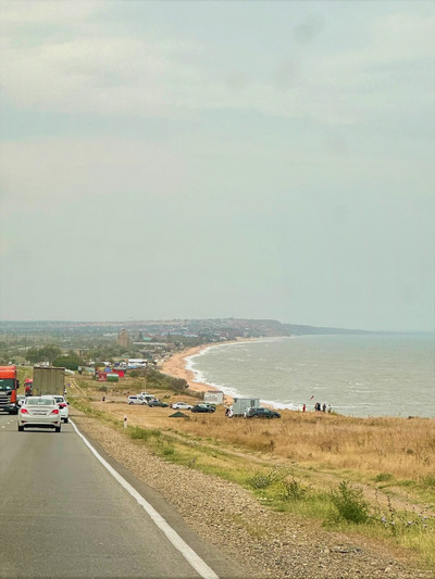 Когда ехали обратно (уже во второй раз), я для развлечения читала какую то безграмотную рекламную статью турагентства про наш поселок: "Это последний поселок на материке..." Но, на самом деле, примерно так это и выглядит. Ты едешь долго по М4, меняются города и села, красивые пейзажи, а потом, уже на Таманском полуострове, с холма у маяка близ Голубицкой видишь море..