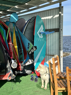 Ветер дует ровно. Гоняй в свое удовольствие, только плавник возьми покороче. Детей тут тоже будет отлично учить. (тем более тут их много, для местных детишек организовано бесплатное обучение, спасибо хозяевам станции)