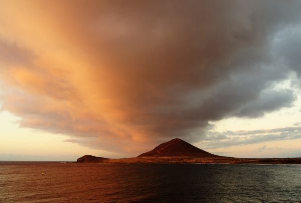 Четко-четко, горы, скалы, волны у берега - перед нами возник остров. Судя по всему Гран-канария.... А до него километров 100 минимум... Видимо, как то получился такой мираж. Когда солнце поднялось, остров был виден не так ясно, но все-таки виден. Вечером, когда поехали ужинать в Лос Абригос, спросили Лешу (он тогда только что приехал), видит ли он остров?